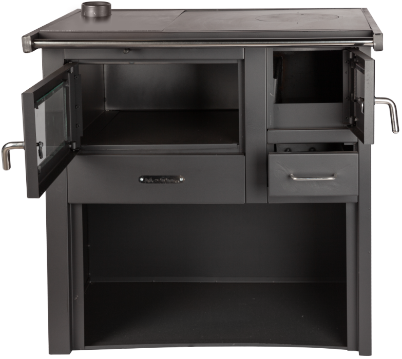 It is a solid-fuel stove that can be used both for heating dwellings and for cooking (it is equipped with a hob and an oven). The stove is made of steel with a steel hob and an oven (on the left or right).