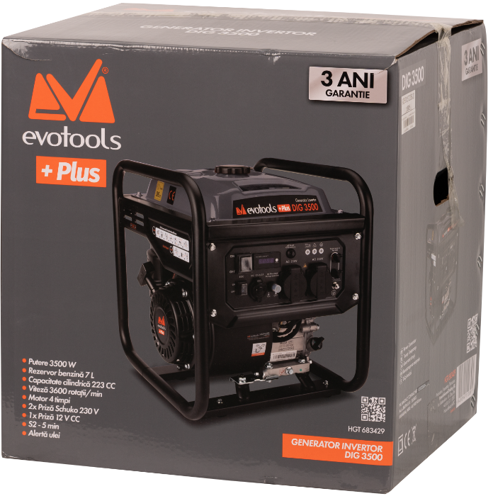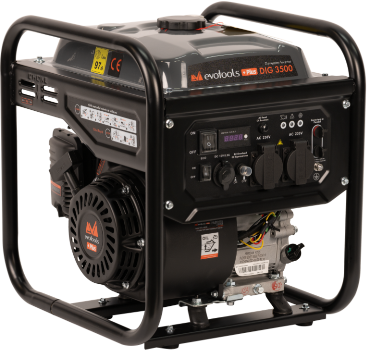Benefit from a stable and reliable power source wherever you need it with the EvoTools +Plus® DIG 3500 Inverter Generator . Designed to deliver clean, consistent power, this generator is ideal for powering sensitive equipment, as well as for camping, outdoor events, or as a backup source in case of a power outage. Inverter technology ensures superior power quality, similar to the mains.