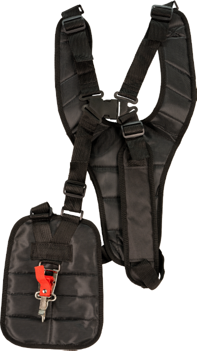 This harness is perfect for long periods of use, ideal for landscaping professionals and owners of large gardens who need robust, comfortable equipment.